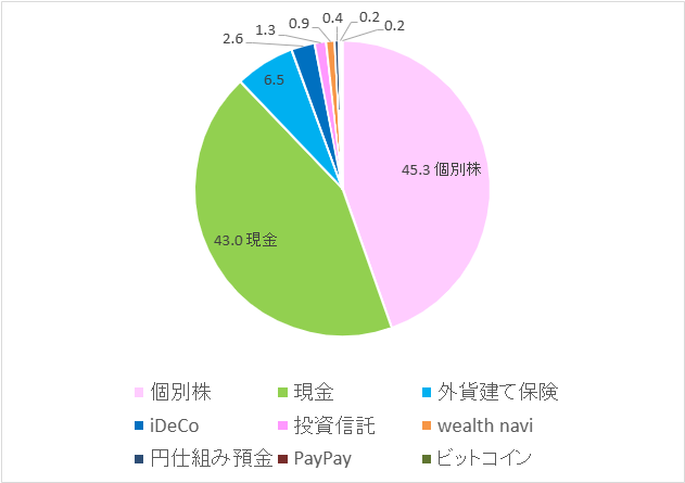 現在の資産の内訳を円グラフにまとめてみました。