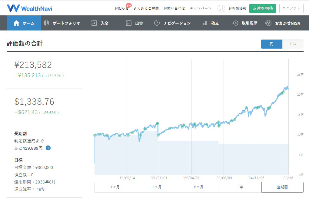 改めて確認すると現在の元金は7万に対して、現在の評価額が3倍以上の約21万とロボの投資に驚いています…!