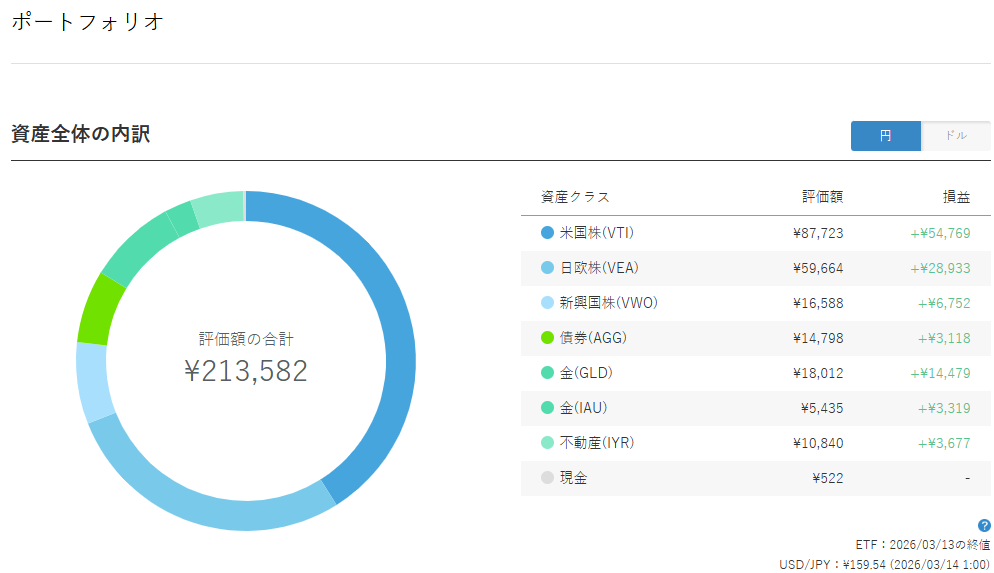 2026年3月時点の総資産は下記の通りでした。